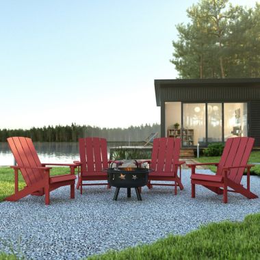 Flash Furniture 5 Piece Charlestown Red Poly Resin Wood Adirondack Chair Set With Fire Pit Star And Moon Fire Pit With Mesh Cover Bed Bath Beyond